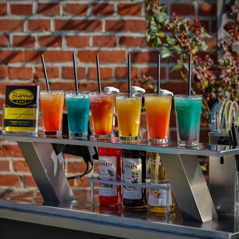Mit unserer mobilen Cocktailbar servieren wir frisch gemixte Premium-Cocktails in Sekundenschnelle – perfekt für Hochzeiten, Firmenfeiern, Geburtstage und Events jeder Art. Dank voreingestellter Rezepte genießt ihr konstant beste Qualität und ganz ohne Wartezeiten.