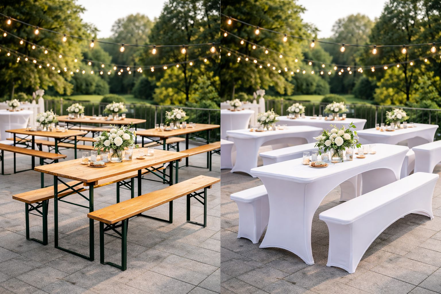 • Stehtische, Bierzeltgarnituren & Bestuhlung (auch mit weißen Hussen)